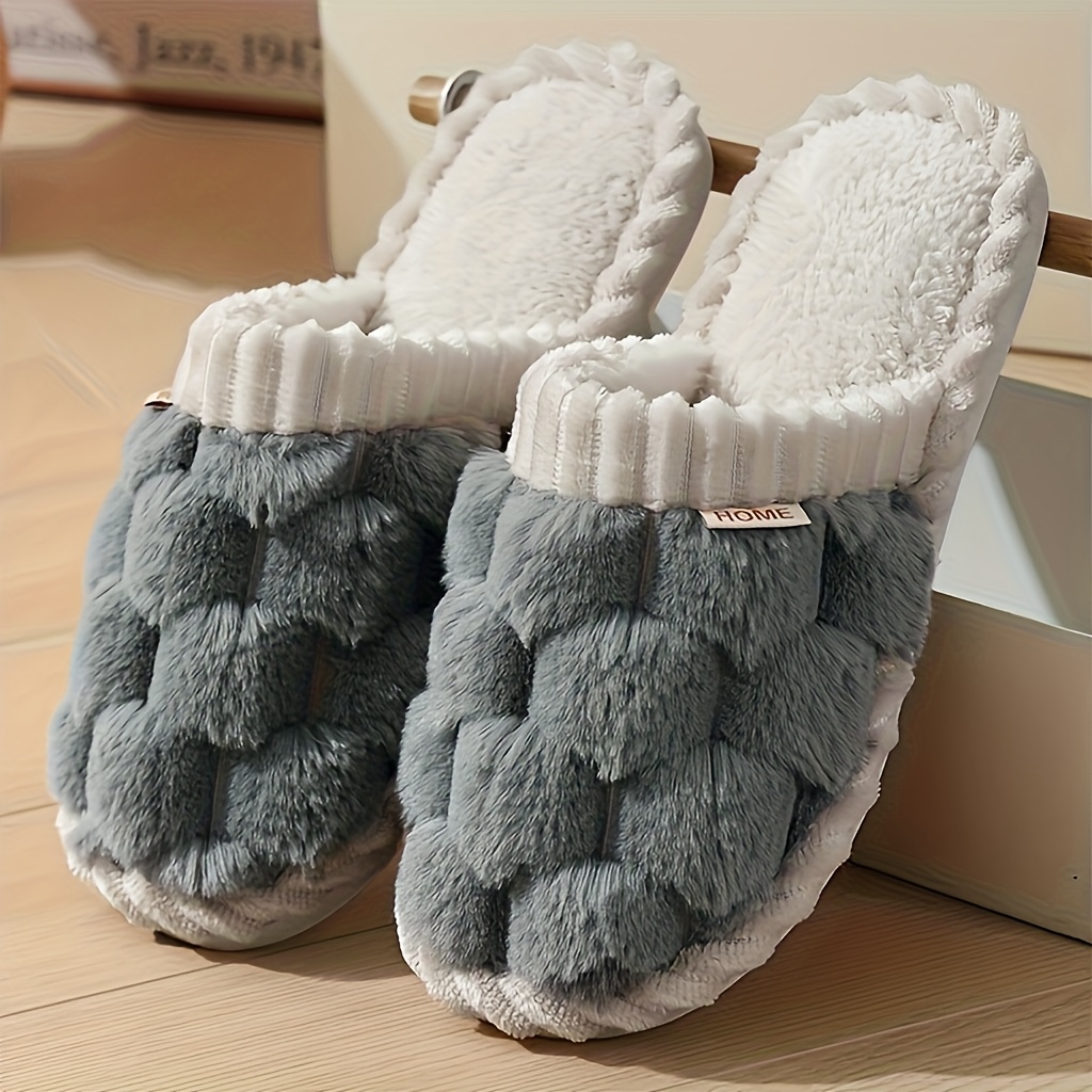 Cozy Plaid Fleece Slippers for Women - Soft, Warm, Non-Slip Indoor Shoes with Thick EVA Sole, Perfect for Winter Home Comfort, Casual Slippers | Plaid Pattern Slippers | Soft Fabric Upper