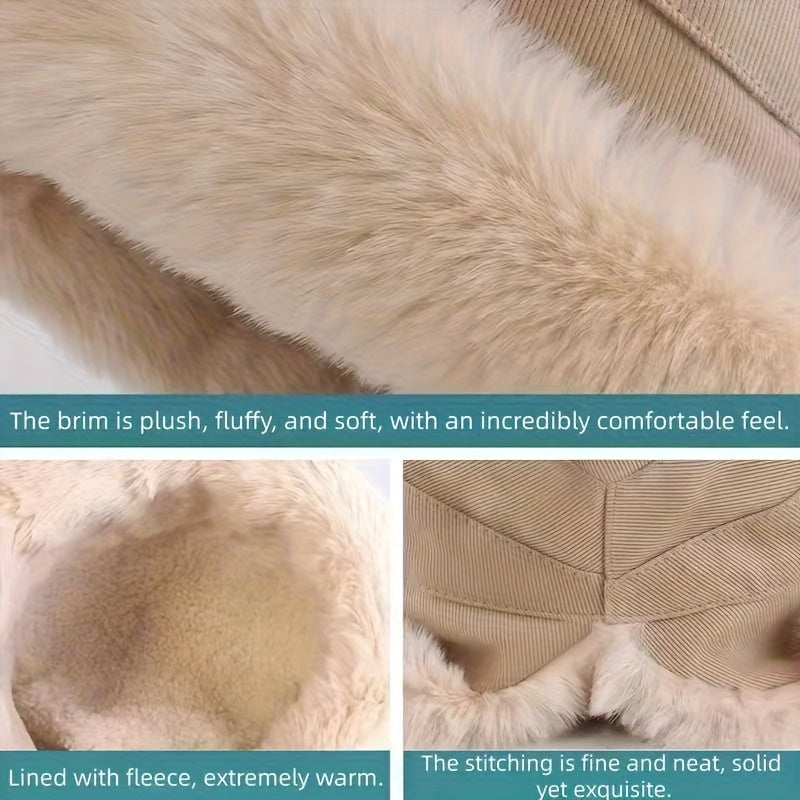 Winter Thermal Bucket Hat, Faux Fur Plush Thickened Ear Protection Fisherman Warmer Hat For Women Xmas Gift